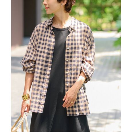 ◆秋のスタイリングに取り入れやすいチェック柄のシアーシャツ