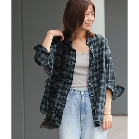 ◆秋のスタイリングに取り入れやすいチェック柄のシアーシャツ