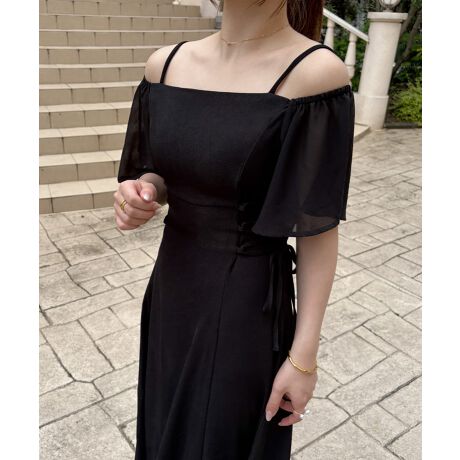 フレアオフショルレースアップキャミワンピース