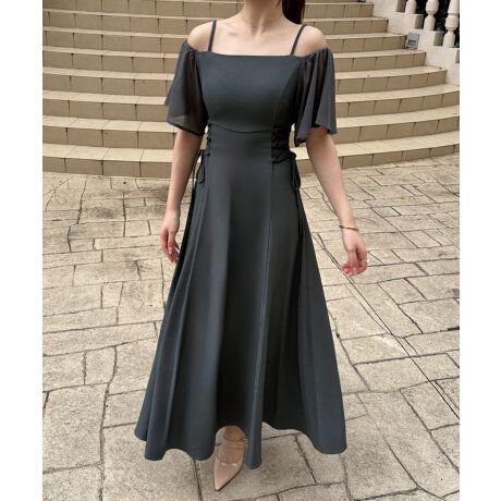 フレアオフショルレースアップキャミワンピース