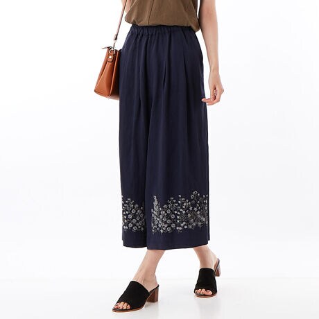 セルロース麻ペタルアレイ刺繍ワイドパンツ
