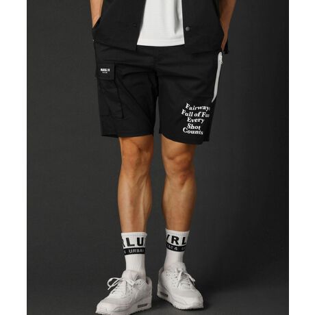 フロントにインパクトのあるレタリングプリントを入れた目を引くデザイン。右腿の横に取り付けた大きなカーゴポケットもアクセントになっています。スナップボタン付きのフラップもあるのでポケットの中身を落とす心配もありません。ヒップポケットにもフラップとマジックテープを付けております。さらに左腿サイドには止水ジップ付きのポケットも搭載。ゴルフやテニスなどのプレー中にボールを収納しておけるポケットを多数備えた収納力抜群の一本に仕上げております。フロントのプリント以外にもところどころにラバーワッペンやプリントが散りばめられた、遊び心を感じさせるデザインも魅力的です。