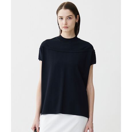 ■デザインレイヤード見えが新鮮なデザインプルオーバー。ドロップした抜け感のあるショルダーラインから袖にかけて一続きにすることで、ゆるやかで優しい印象に。気になる二の腕もカバーできるよう、腕回りのシルエットとカッティングにもこだわりました。モックネックがモードで上品見えし、お顔回りのすっきり見えも叶えてくれます。一枚でサマ見えすること間違いなしのICBらしさが光るニットTEEです。