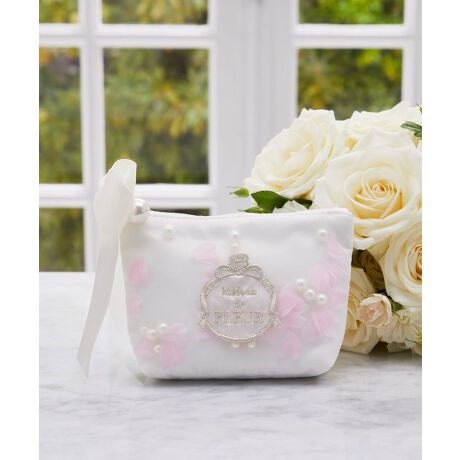 June Bride Collectionベールのようなチュールを重ね、中にフラワーシャワーをイメージした花びらを入れた遊び心のあるデザインに仕上げたミニポーチ。