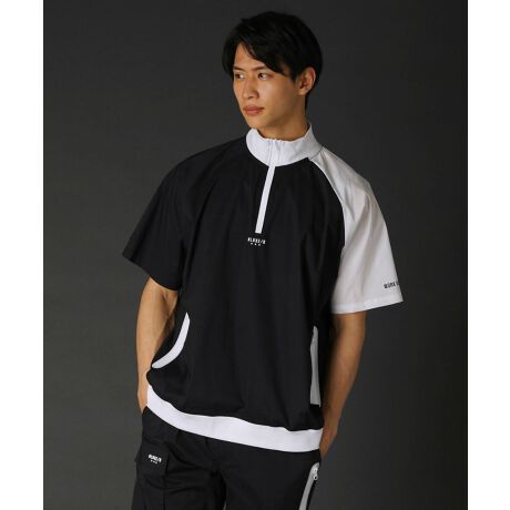 R/撥水加工コットンナイロンストレッチ布帛ハーフジップ止水ジップ半袖プルオーバー