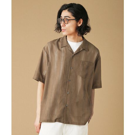 ストライプ柄のカラミ織りの生地を採用した、トレンドのシアー感を楽しめるオープンカラーシャツ。