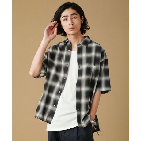 オンブレチェック生地を採用したドローコード付き半袖シャツ。