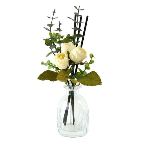 【香りが心地よく広がるインテリア】暮らしを彩り、素敵空間を演出☆ナチュラルでおしゃれな「ボタニカルディフューザー」。【華やかに香るディフューザー】ガラスのフラワーベースにフェイクフラワーを飾りながら、香りを楽しめるアイテム♪【手軽にセット!火を使わず安全】ボトルに入れたオイルにスティックを挿し、吸い上げて拡散。約1〜1.5ヶ月香りが持続。(※)芳香期間は目安です。使用環境によっても異なります。【毎日の生活にお気に入りの癒しを】お部屋や玄関先などにお花と香りをプラスすることで、いつもの暮らしがより豊かに。【頑張っている人へのご褒美に】自分用にはもちろん!慌ただしい毎日を送る方へ、香りのギフトを。【香りのラインナップ】フルーティー:フレッシュな柑橘系の爽やかな香り。(※)ポンポンマムホワイト/ブーケホワイト/ローズアイボリーティーフローラル:穏やかで心が癒される紅茶の香り。(※)ポンポンマムイエロー/ブーケイエロー/ローズオレンジピーチ:みずみずしいピーチの優しい香り。(※)ポンポンマムピンク/ブーケピンク/ローズピンクざくろ:酸味のあるベリー系の香り。(※)ポンポンマムブルー/ブーケブルー/ローズバイオレット