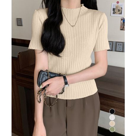1枚でも重ね着にも着まわし上手な半袖リブニットトップス