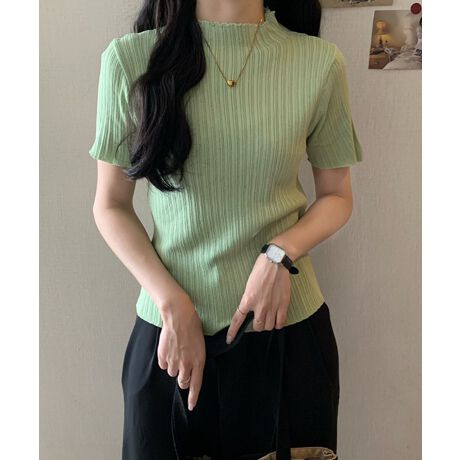 1枚でも重ね着にも着まわし上手な半袖リブニットトップス
