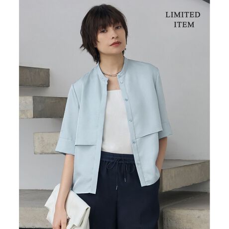 ■デザインバンドカラーで程よくゆったりとしたサイズ感がポイントのクロップドシャツです。フライヨーク、サイドスリットの入った前後差のある今シーズンらしいバランスで、一枚でも羽織アイテムとしても活躍するアイテムです。
