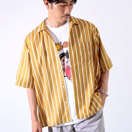 【GLOSTER/グロスター】レトロラインプリント半袖シャツ オープンカラーシャツ アロハシャツ