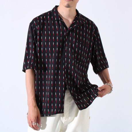 【GLOSTER/グロスター】レトロラインプリント半袖シャツ オープンカラーシャツ アロハシャツ