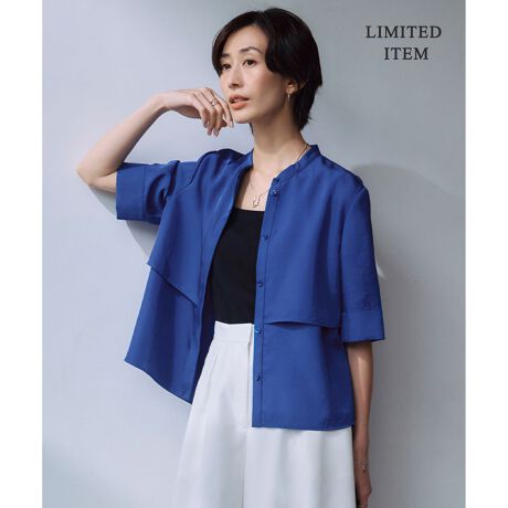 ■デザインバンドカラーで程よくゆったりとしたサイズ感がポイントのクロップドシャツです。フライヨーク、サイドスリットの入った前後差のある今シーズンらしいバランスで、一枚でも羽織アイテムとしても活躍するアイテムです。