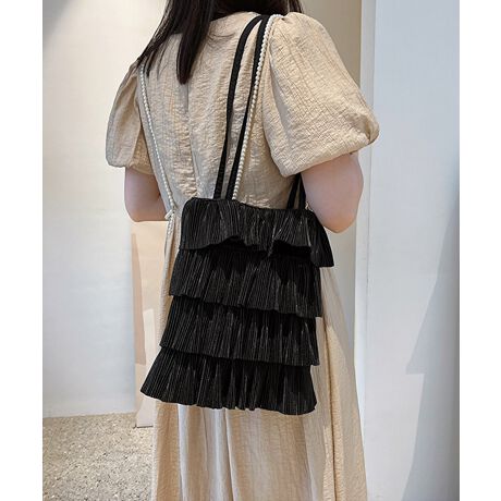 華やかなフリルが目を引くプリーツデザイントートバッグ。