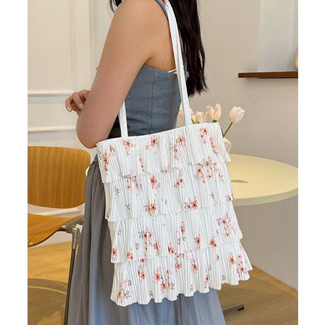 華やかなフリルが目を引くプリーツデザイントートバッグ。