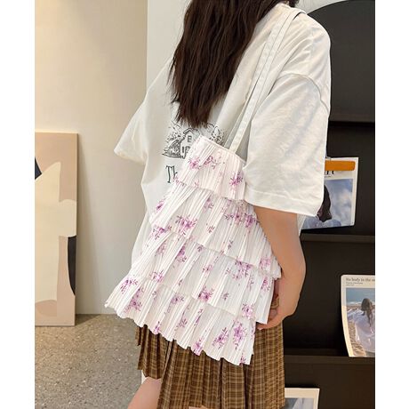 華やかなフリルが目を引くプリーツデザイントートバッグ。