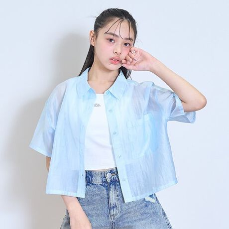 ひんやりと感じる接触冷感機能がついた涼しげなシアーシャツです。