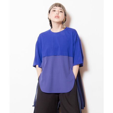ラフになりがちな夏を、モードに乗り切る異素材コンビネーションのTシャツ。