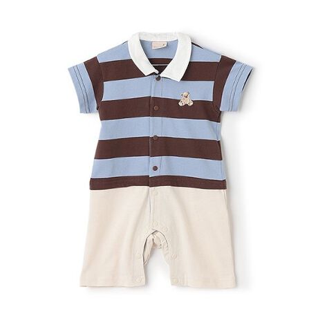 くま刺しゅうの入ったボーダーデザインが可愛らしいカバーオールです。