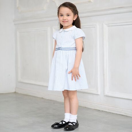 スカラップデザインの衿が上品なワンピースです。