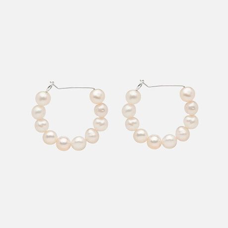 クリーミーな淡水パールをあしらったフープピアスピアス。