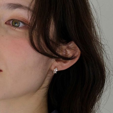 中央には艶やかなパールを添え、耳元を優しく彩るデザインです。