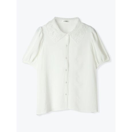 レース襟パフスリーブブラウス