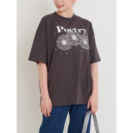 フラワー刺繍×キラキララインストーンがアイキャッチーな着映えTシャツ。