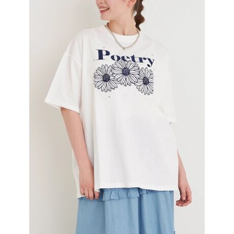 フラワー刺繍×ラインストーンTシャツ