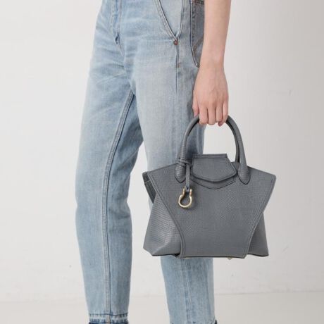 バッグ全体のサイズ感に始まり、フラップの大きさ、ハンドルの高さ、特にサイドのマチの見え方は、何度も修正を重ね辿り着いたバランス。