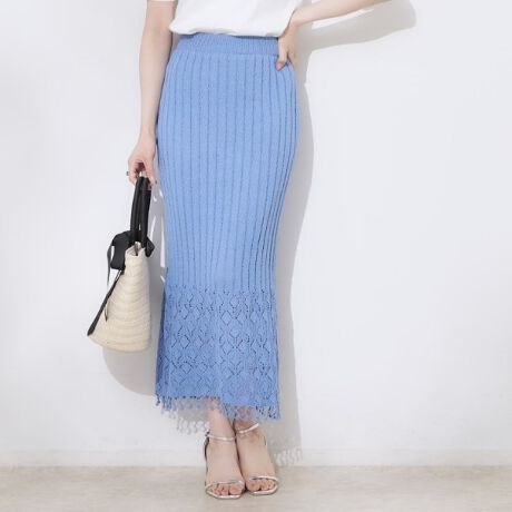 透かし編みフリンジニットスカート