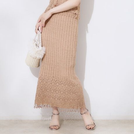 透かし編みフリンジニットスカート