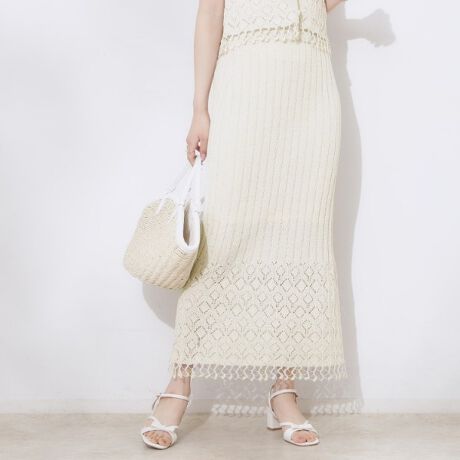 透かし編みフリンジニットスカート