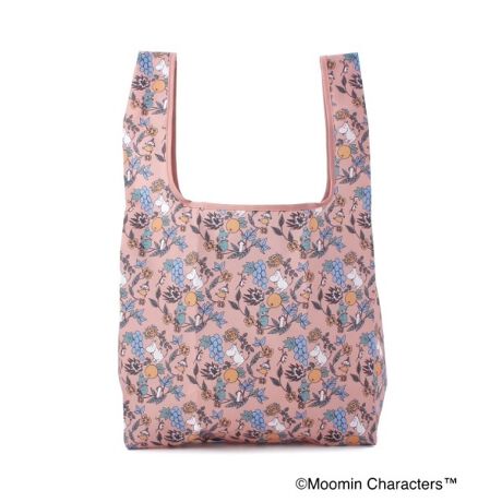 ムーミン谷の仲間たちが、フルーツや草花の中にレイアウトされた、デザインが可愛いショッピングバッグです。