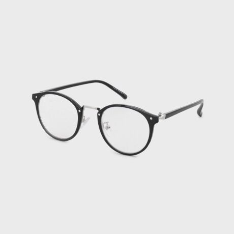 フレームに厚みのある黒縁伊達メガネ。