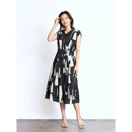 高めのウエスト切り替えがスタイルアップを叶え、裾に向かってふんわり広がるフィット&フレアシルエットが女性らしさを引き立てます。