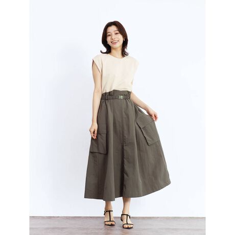 スカートはボリュームのあるAラインシルエットに仕立て、カーゴポケットがアクセントに。