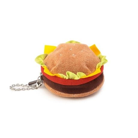 遊び心たっぷりな『バーガーショップ』のバーガー型ポーチです。ふわふわのバンズに、レタスやチーズ、トマト、お肉がサンドされています。サイドにはチェーンをあしらい、バッグなどに付けられるようデザインしました。リップや目薬、小銭など、ちょっとした小物を持ち運べる、魅力的な一品です。