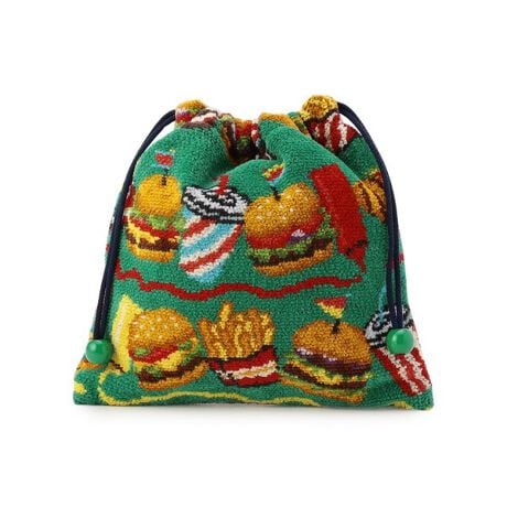 肉汁やチーズが溢れそうな、ボリュームたっぷりのハンバーガーが描かれた『バーガーショップ』の巾着です。ケチャップやマスタードをあしらって、より満足感たっぷりな味わいに。カラフルな色彩は見ているだけで気分を明るくしてくれそう。お菓子やコスメ、トラベルグッズ、お子様のおもちゃなど、さまざまな小物を入れるのに活躍します。