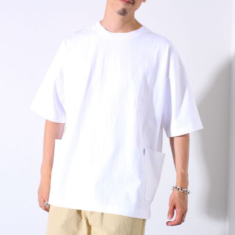バックの配色ステッチと両サイドのポケットが目を惹くデザインTシャツ。リラックス感あるゆったりシルエットで、夏場でもストレスフリーな着心地。
