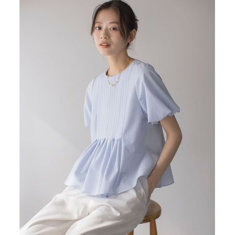 【スタッフコメント】▼身長158cm|着用サイズ2 (通常着用サイズM)前タックデザインが新しい品のあるペプラムブラウスです。さらっとした素材感で着心地が抜群なのも嬉しいポイント!シンプルなボトムス合わせでちょっぴり甘い大人カジュアルスタイリングがおすすめです。