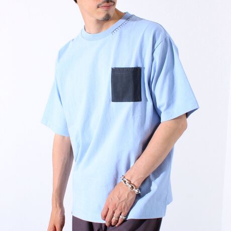配色ハンドステッチが映えるワンポイントポケットTEE