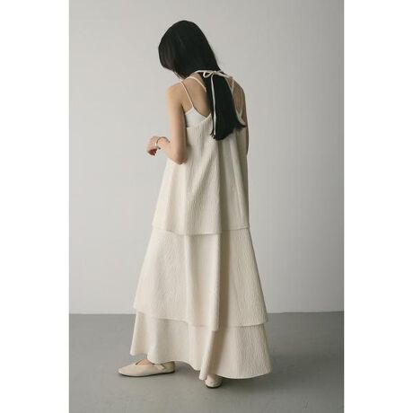 モデル身長165cm(Mサイズ着用)凹凸感のある可愛い生地を使用したキャミワンピース。たっぷりのティアードが程良いボリューム感と抜け感をプラス。ふわっと広がるシルエットで自然と体型カバーが叶う一枚です。一枚ではもちろん、レイヤードでの着用もおすすめです。透け感なし、ストレッチなし。【お手入れ方法】マシンウォッシュ可
