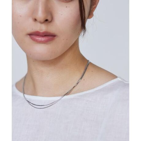 スネークチェーンのショート2連ネックレスは、クールな印象のシルバーでご提案。華奢なチェーンを使用することで、しなやかなカーブラインに。デコルテの開くシャツやVネックなどとのスタイリングがおすすめ。・アジャスター調節可■サンプル撮影商品こちらの商品はサンプルでの撮影となっております。実際の商品とは、サイズや色味、素材、デザイン等の仕様が若干変更になる場合がございます。■カラーについては、可能な限り実際の商品に近いカラーで撮影をおこなっておりますが、照明の関係により実際の製品とは色味が違って見える場合があります。またパソコン・スマートフォンなどの環境により、若干製品と画像のカラーが異なる場合もございます。現物と画像のカラー差異については返品理由となりませんので、予めご了承ください。