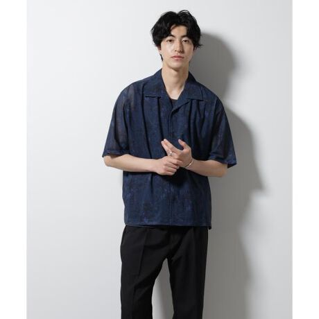 メッシュならではの通気性と清涼感が特徴的なオープンカラーシャツ。トレンド感溢れるダークボタニカル柄が夏におすすめの一着です。