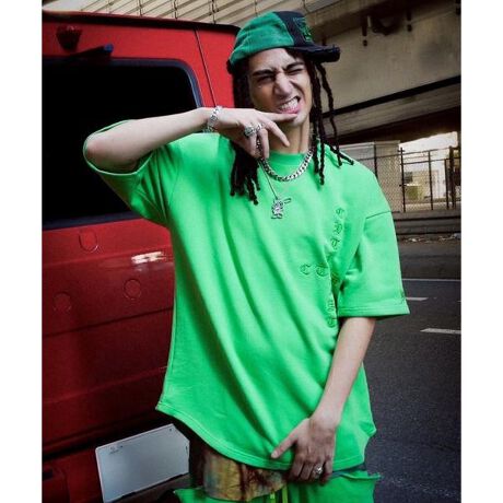 ネックはリブ編み仕立て、ボディはゆったりとしたリラックスシルエットでストリートライクな仕上がりです。