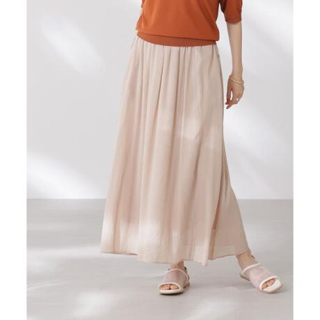 たっぷりとギャザーが入った程よいボリューム感が魅力のスカート。ウエストゴム仕様で履き心地も抜群の夏にぴったりなボトム。ボリューム感と動きのあるシルエットを作りだし歩くたびにふんわりと広がり女性らしい柔らかな印象を与えてくれます。