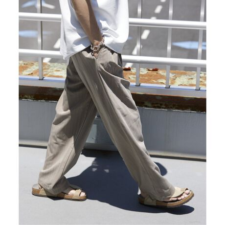 かかとの出るサンダルやコンパクトなビーチサンダルなど夏のシューズに、相性ピッタリなスラックス。