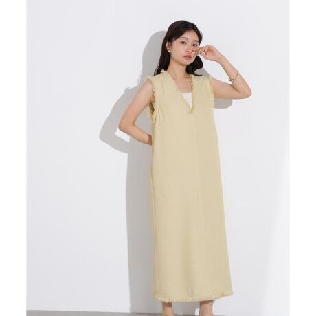1枚でこなれ感を叶えるナローシルエットのワンピースです。ざっくりと織られたサマーツイードのような素材感が映え、端にフリンジを入れることで退屈しないデザインに。深めのスキッパーネックデザインで抜け感をプラス。インナーを変えるとロングシーズン着ていただけます。<素材>ざっくりと織られた配色感のある素材を使用。綾目が立っていてドライタッチな素材です。裏地が付いているので肌当たりが良いです。<詳細>仕様・開閉なし裏地・あり透け感・なし / 光沢・なし / 伸縮性・なし生地の厚さ・普通※モデルの着用画像の場合、光の当たり具合により、実際の色味と異なって見えることがございます。色味は、商品単体の画像をご参照ください。